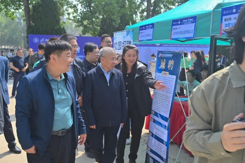 招聘会现场,徐征和一行深入各参会单位招聘展位,与用人单位和求职学生亲切交流。结合学校“招生—培养—就业”联动机制,徐征和听取了用人单位对学校人才培养、专业建设、实践教学等方面的意见建议,深入了解行业人才需求情况,就深化校企合作、共建产教协同育人平台进行探讨,推动建立多方位、深层次的人才合作关系。同时,徐征和强调要持续推进“访企拓岗”促就业行动,构建校院两级就业渠道拓展体系;在亲切询问毕业生的求职规划和应聘进展时,他鼓励广大青年学子传承校史精神,将个人“小我”融入国家战略发展的“大我”,抢抓就业机遇,主动投身基层一线、国家重点行业和领域建功立业,在贡献社会中实现人生价值。